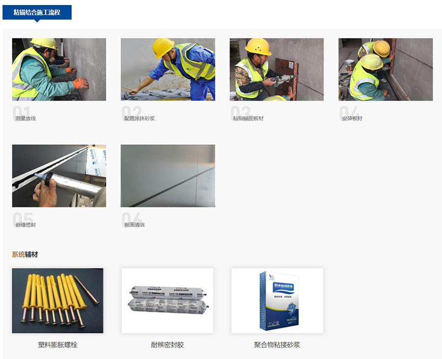 石材裝飾節(jié)能一體化系統(tǒng)由石材裝飾節(jié)能復(fù)合板、膠粘劑、嵌縫、密封材料和金屬導(dǎo)軌、金屬固定件構(gòu)成;采取以粘貼式施工;背鉤連接件、金屬導(dǎo)軌承托的運(yùn)用,通過(guò)“粘、錨、托”的等固定方法的組合,使系統(tǒng)固定安全、穩(wěn)定可靠。